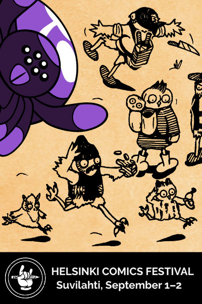 Helsinki Comics Festival to announce the joy of the collective to the Finnish comics consumers. If you happen to be around, come say hi and take a look at the cool merch – spidery and owly alike!